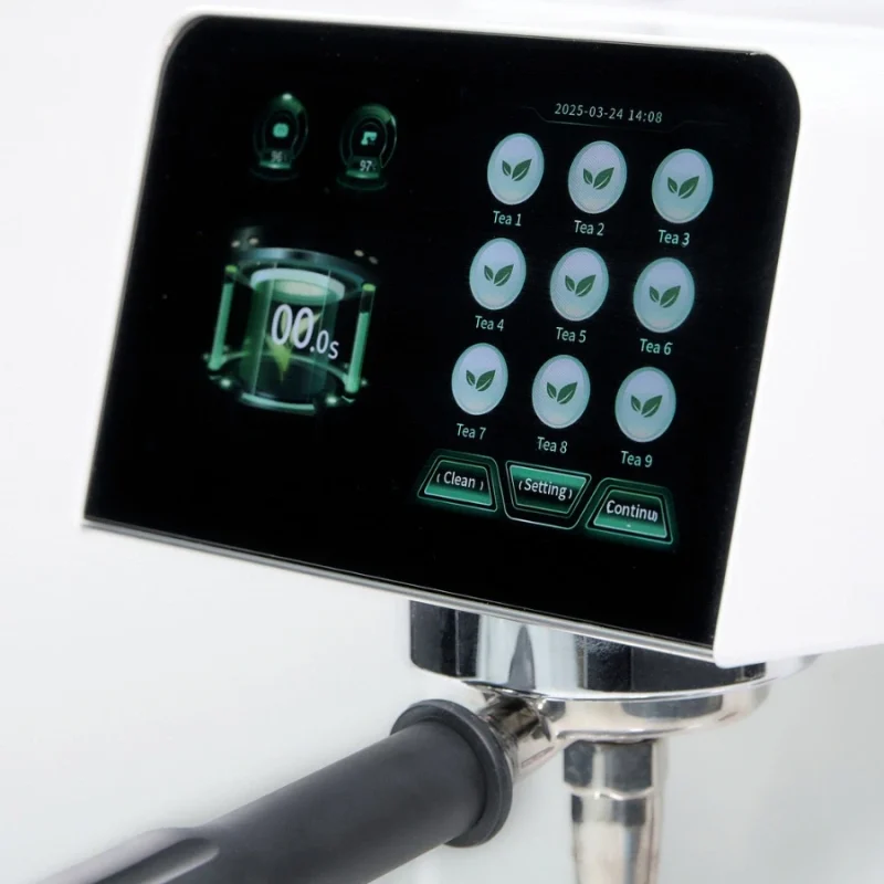 Máy có tay cầm gần giống như máy espresso nhưng sẽ được thiết kế khác đôi chút để tối ưu hơn cho việc pha trà.